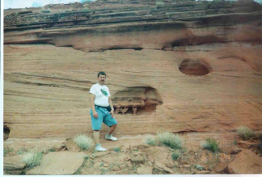 Augie with Houesboat-95 at our fist anchorage in Dungeon Canyon. Day 2 (31 Mar 97).
